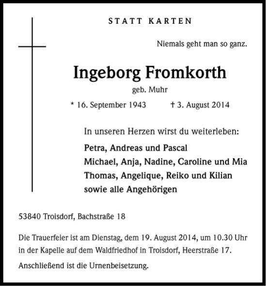 Ingeborg Fromkorthgestorben am 3. August 2014