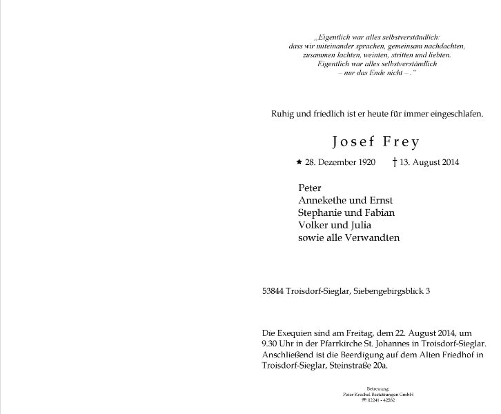Josef Freygestorben am 13. August 2014