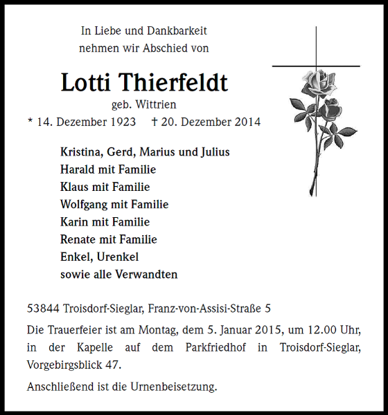 Lotti Thierfeldt geb. Wittrien