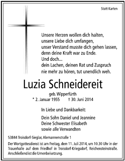 Luzia Schneidereit geb. Wipperfürth