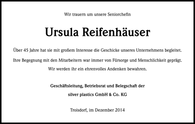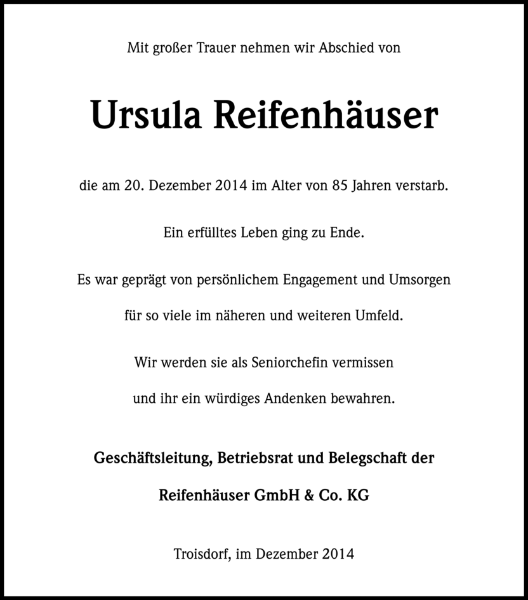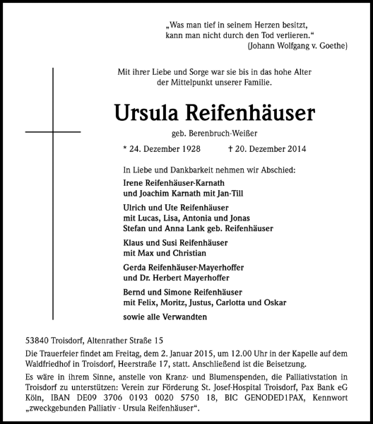Liebe Angehörige von Ursula Reifenhäuser,